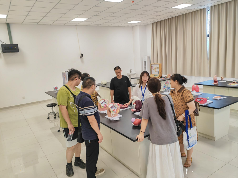 在专业教师的引导下,来访者开启了一场融合科技与人文的医学探索之旅。首先抵达急救护理技术实训室,逼真的高仿真模拟人和沉浸式场景让参观者身临其境地感受生命救护的紧迫性。随后,大家移步药学仪器分析实验室,现场目睹高效液相色谱仪实时分析复方感冒药成分,将抽象的理论知识转化为直观实验,清晰展现了现代分析技术在医药领域的核心价值。